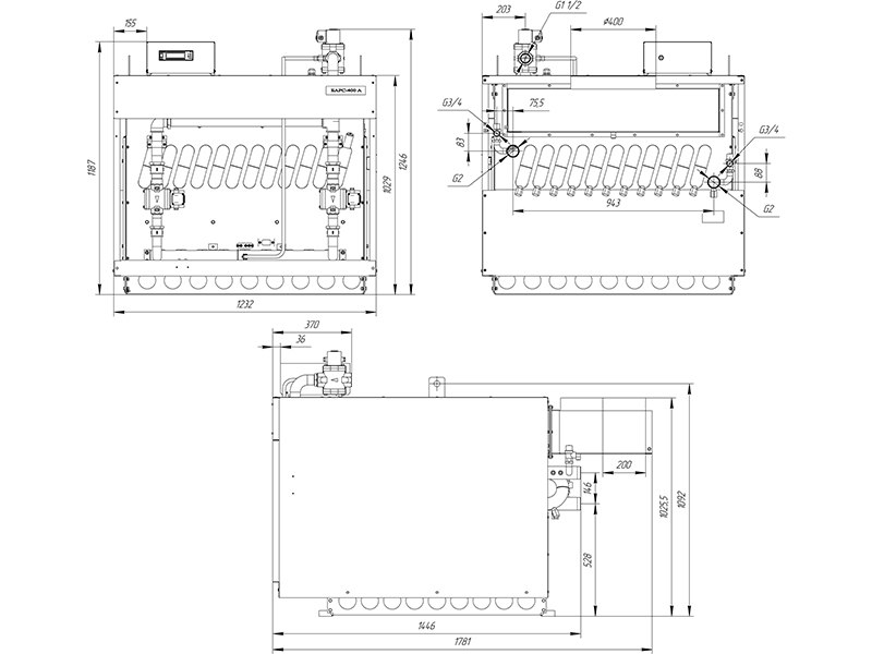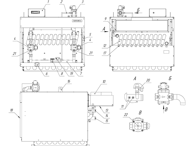 Комплект поставки котла «Барс 400» с КСУБ 20.10 и модуляцией мощности